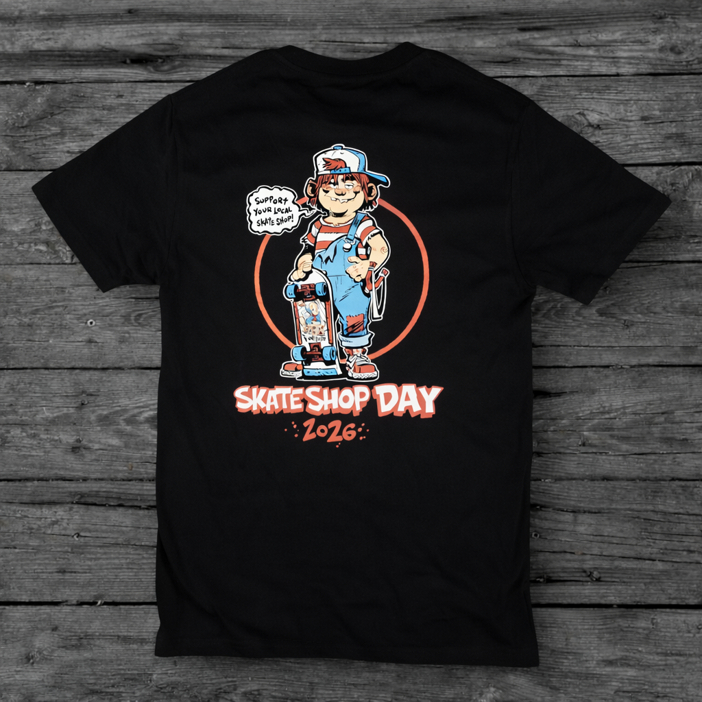 The Shopkeepers grace us with the 6th annual Skateshop Day gear. This year feature is what's been called The Baby Blain because it reminds everyone of a young Jeffrey Blain Grosso. Drawn by this year’s featured artist, esteemed comic book artist, Brett Parson (ig: BlitzCadet).