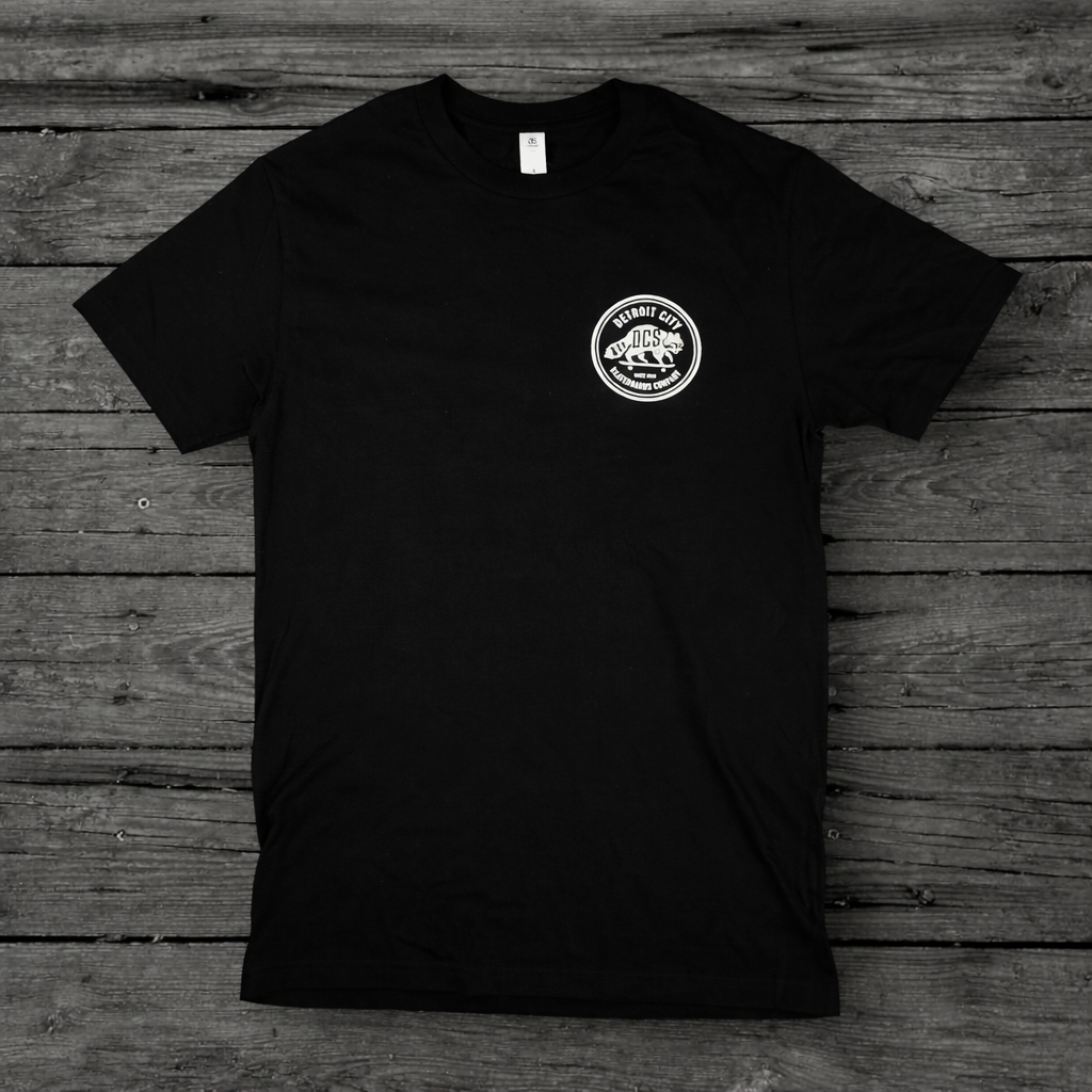 Print: DCS/co. Logo on left chest and Skate Shop Day Baby Blain on back