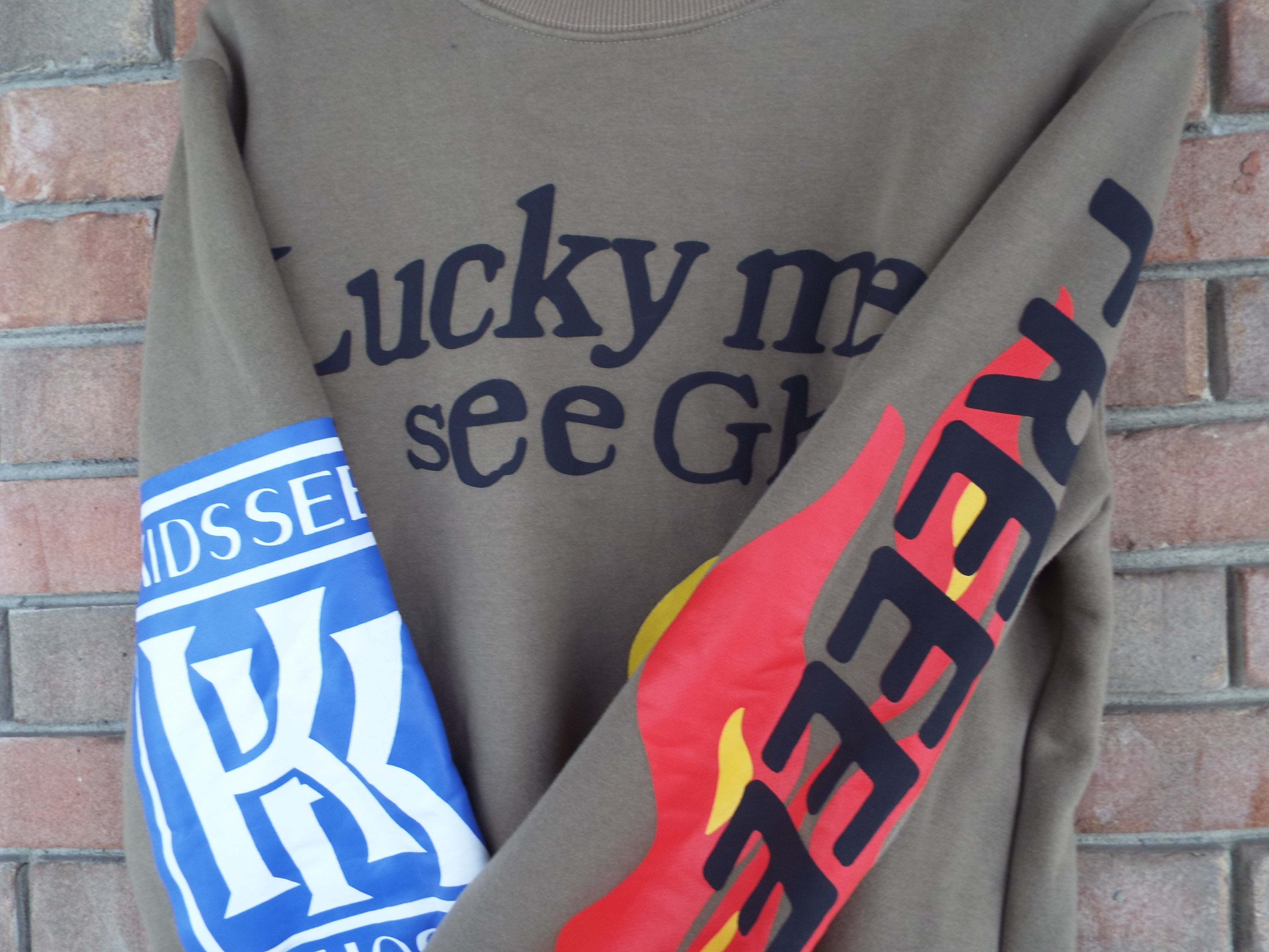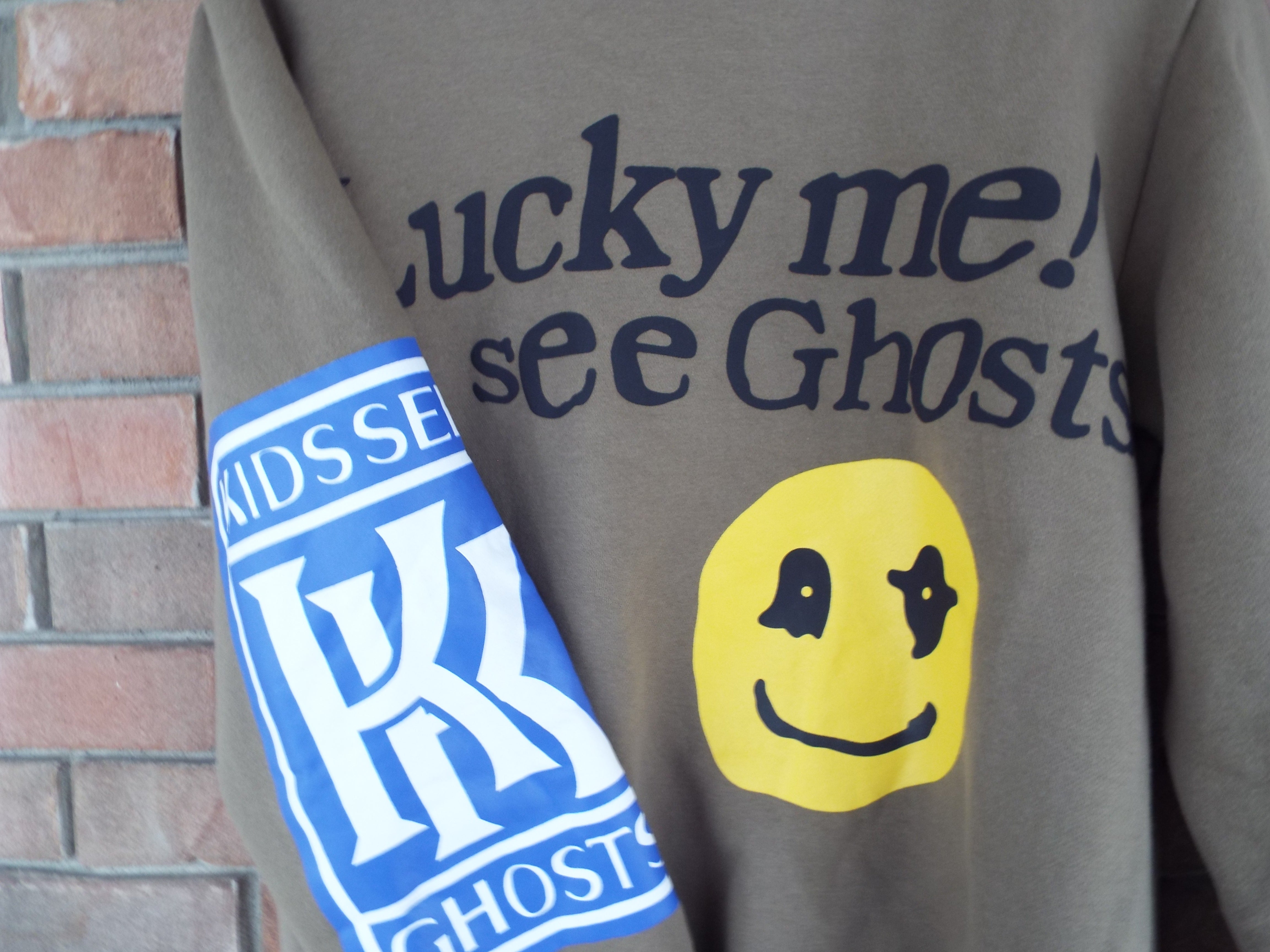 • “Lucky Me! I See Ghosts” printed across chest